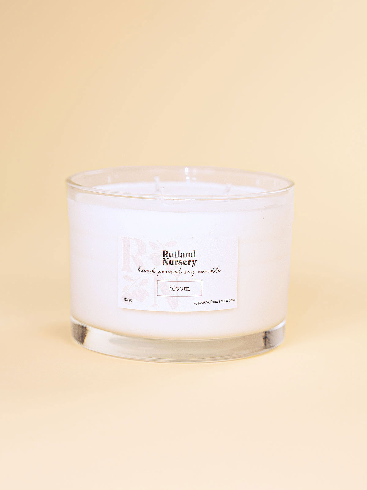 Bloom Large 3 Wick Candle by Rutland Nursery, this beautiful hand poured soy wax candle is created especially for us.