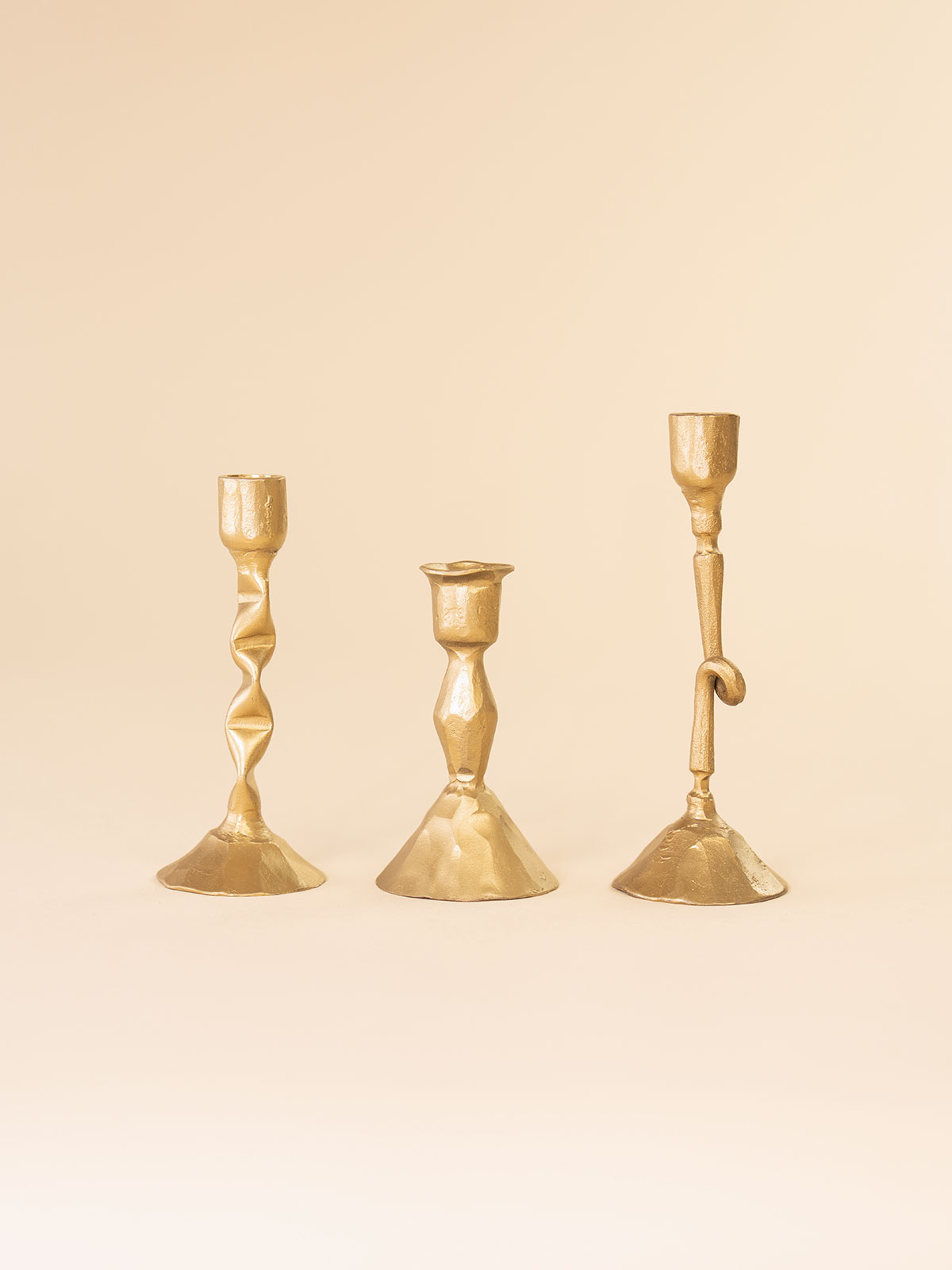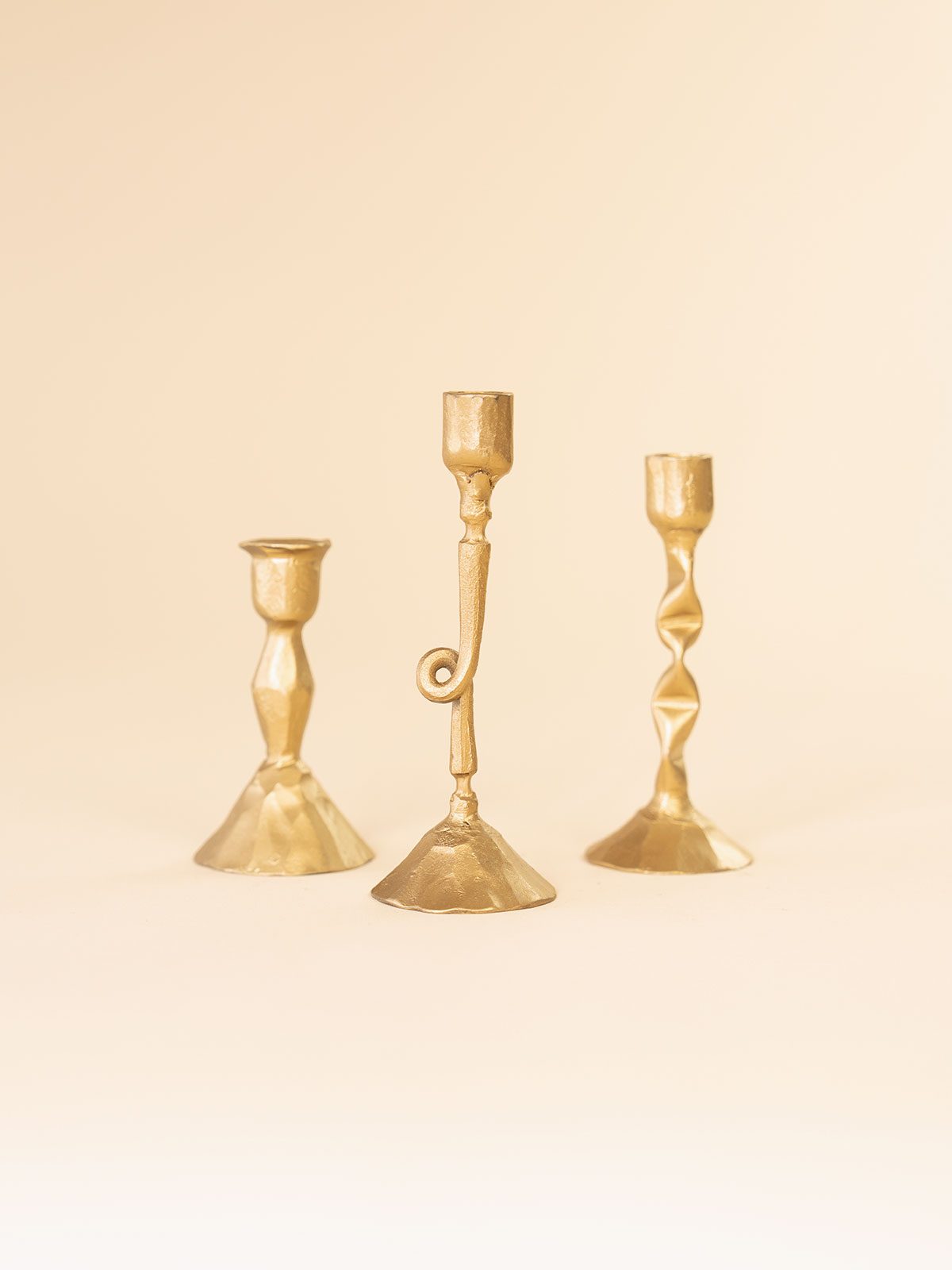 3 brass candleholders